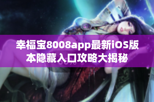 为了让用户更好的使用幸福宝8008,幸福宝app提供了隐藏入口最新ios版。用户可以通过这个隐藏入口下载最新的幸福宝app ios版,可以更好地体验小说阅读的乐趣。同时,幸福宝app也会定期升级版本,提供更好的稳定性和用户体验。